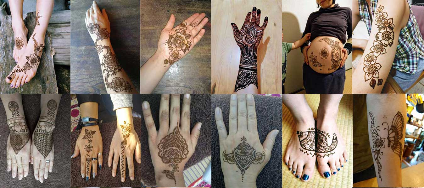 世界各地に伝わるメヘンディですが、国柄、習慣、お祝い、お祭りや信仰によりメヘンディアートの描き方が異なります。伝統的に行っているところでは手や足に描くことが多く、薬効高い植物・ヘナによる健康管理や、幸せやお祝いのために、またお祭りのときに感謝や祈りを表すために描かれてきました。インドでは結婚式の花嫁の手足にびっしりとメヘンディが描かれ、妊娠や出産のときには、邪気や病気から身を守るために描きます。もちろん、ただファッションを楽しむためだけにも描きます。メヘンディは、南アジア・中東・アフリカ大陸など数々の地域で昔から伝わる伝統文化であると同時に、1~2週間楽しめる気軽なボディアートとして、最近では欧米や日本でも親しまれています。