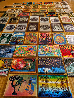 山本アンナの布絵とオリジナルポストカード・各種セットです。『布絵』/山本アンナの絵を特殊な機械を通してデニム生地に表現しました。刺繍とビーズを施しています。サイズ・B4(縦364mm×横257mm)・各33000円(税・送料込)『ポストカード』/オリジナルポストカードの各種セットです。大型ポストカードセット・沖縄の風景ポストカードセット・ペン画ポストカードなどがあります。